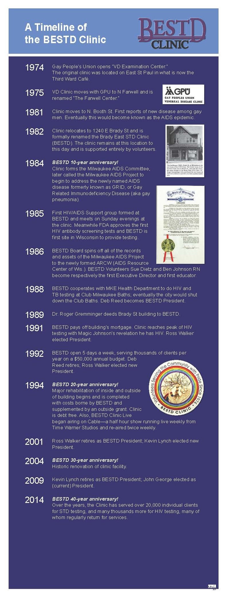 The History Display at PrideFest 2014 featured new panels commemorating the Brady East STD (BESTD) Clinic's 40th year of operation.