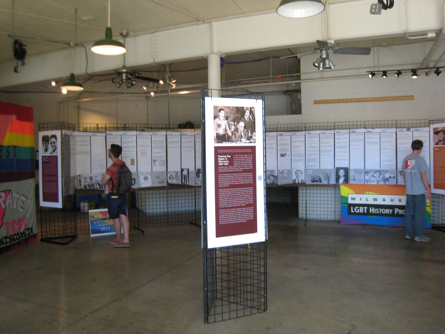 However the display did include many panels from previous years: most notably, photo panels exhibiting some of the thousands of photographs from 15 years of Wisconsin Light newspaper, as compiled by Jerry Johnson, one of the owners of that Milwaukee-based LGBT newspaper, which was published from 1987 to 2001. Also featured were the panels commemorating two important anniversaries in 2012: the 25th Milwaukee PrideFest celebration, and the 40th anniversary of the signing of the Gay Rights Act.
