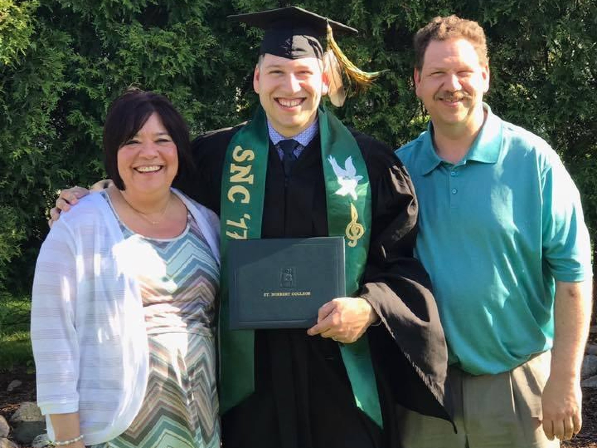 At St. Norbert, Benny pursued an undergraduate degree in music and liberal arts, alongside a minor in leadership studies. He met his future husband, Ryan, at the end of his junior year. They dated for ten months and were happily engaged by spring break of senior year. Two years later d uring the wedding ceremony, Benny took Ryan’s last name (Rieth.)