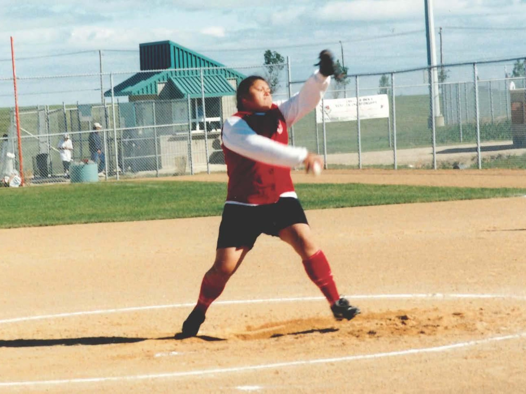 Her father's solution was sports. From the fifth grade onward, she played volleyball, basketball, and softball year-round. Starting at age nine, her father pushed her to pitch, hoping to stabilize her weight and build her confidence so she wouldn't be bullied.