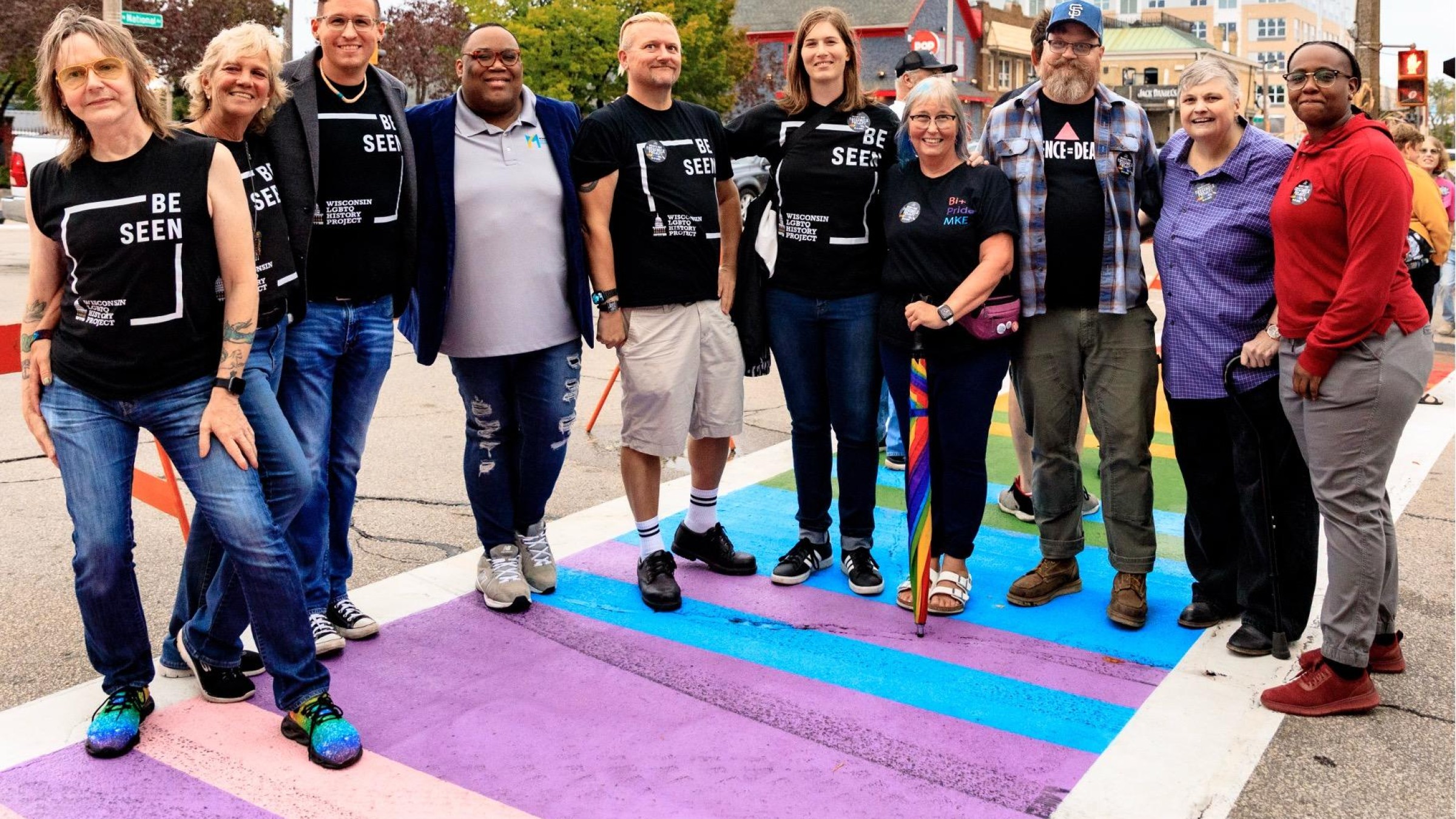 On Monday, October 13, we brought rainbow crosswalks to Walker's Point -- an LGBTQ destination for over 80 years and the home of Milwaukee's eight surviving LGBTQ bars -- at a community celebration that included business owners, nonprofit leaders, elected officials, media, and neighbors of all ages. The crosswalks, which line National Avenue at 2nd Street, were designed by artist Jeremy Novy and installed by city contractors Crowley Construction Company as an approved project of the City of Milwaukee Paint the Pavement program.