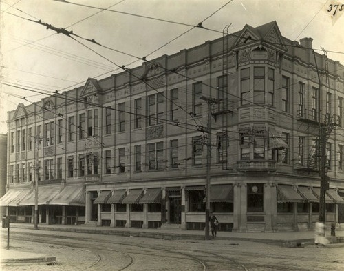 The Telephone House, a retail store owned by Jimmy O'Conner, was located in a historic 1886 building that previously housed the German American Bank, neighborhood post office, and a gay-friendly, $7/week rooming house. The building was a distinct visual landmark at 2nd and National. Unfortunately, it was destroyed in a five-alarm fire on September 10, 1986. The fire, which drew 125 firefighters and 15 fire engines with 20-30 foot flame jets, was confirmed to be arson. It's been a parking lot ever since.